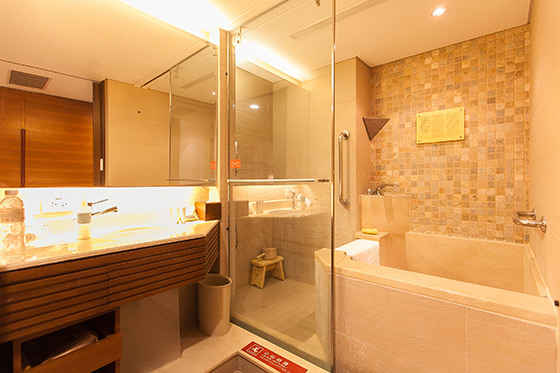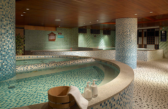 佔地400坪的天幕風呂,座落於游泳池畔,分為『水流養身步道區』、『芳香浴池區』、『超音波紓壓區』、『個人湯屋』等主題區;擁有各項豐富的設備與按摩浴池,讓身體血液循環達到最佳效果,徹底放鬆疲勞。